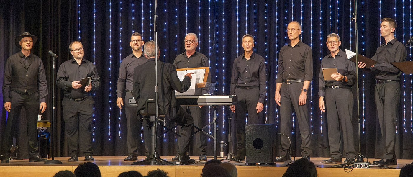 Wir singen Arrangements moderner und klassischer Chormusik, besonders gern auch Barbershop-Harmonien, vom klassischen Weihnachtslied über die Filmschnulze aus den 20er Jahren sowie Pop- und Rocksongs aus der jüngeren Vergangenheit bis hin zu zeitgenössischer A-cappella-Literatur. Kostproben geben wir bei regelmäßigen Auftritten, etwa bei Liederabenden, Konzerten, Geburtstagsfeiern oder Hochzeiten.